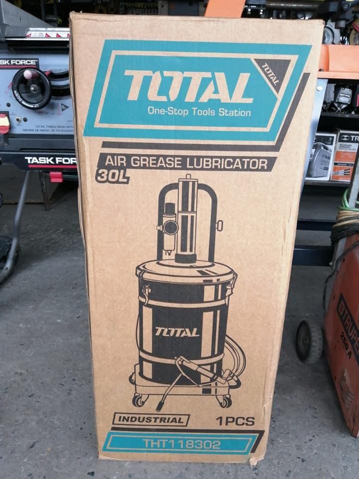 Máy bơm mỡ khí nén TOTAL THT118302 dung tích bình chứa 30L, thùng rỗng 330*430mm, lượng thổi 800g/p