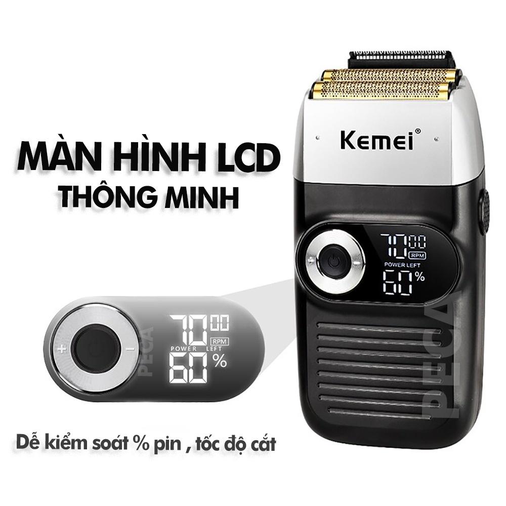 Máy cạo râu lưỡi kép 3 mức tốc độ Kemei KM-2026 màn hình LCD, công suất 5w mạnh mẽ, có lưỡi dự phòng, có thể fade trắng