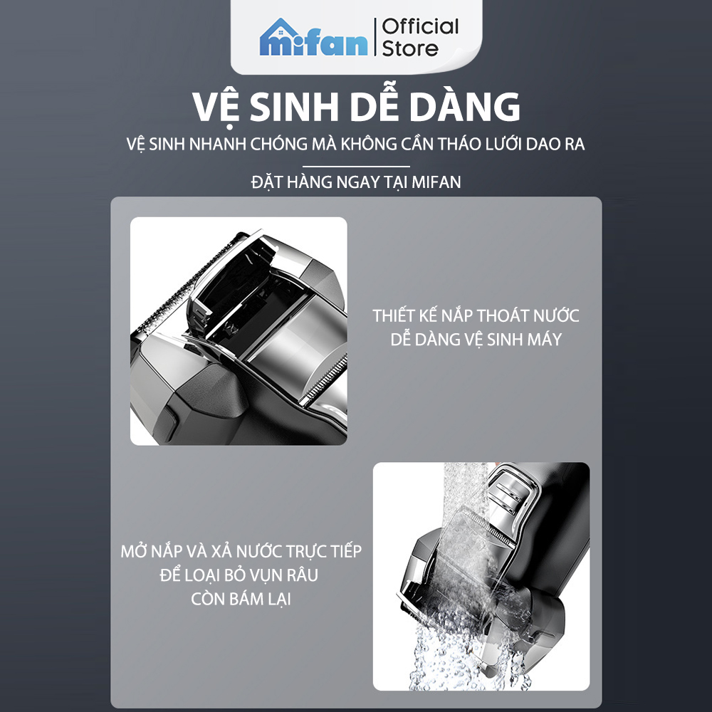 Máy Cạo Râu Mifan RS725 Cao Cấp - Thiết kế 3 lưỡi nổi 3D hiệu quả và an toàn cho da nhạy cảm - Chống nước IPX6 - BH 6 THÁNG