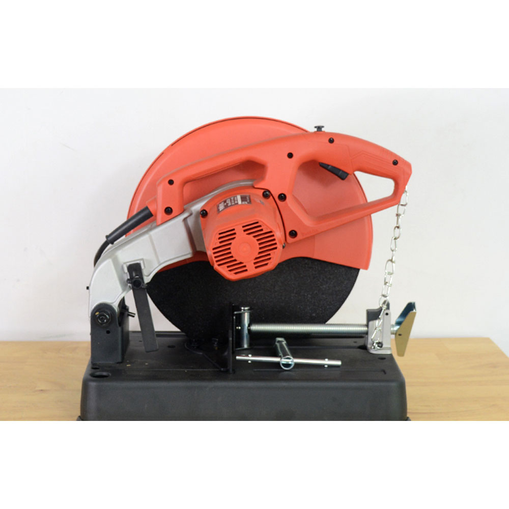 Sản phẩm sử dụng đĩa cắt có đường kính 355mm và đường kính lỗ 25,4mm cùng thiết kế vành bảo vệ quanh đĩa cắt đem đến sự an toàn cho người sử dụng khi cắt, tránh được sự không an toàn khi sử dụng.
