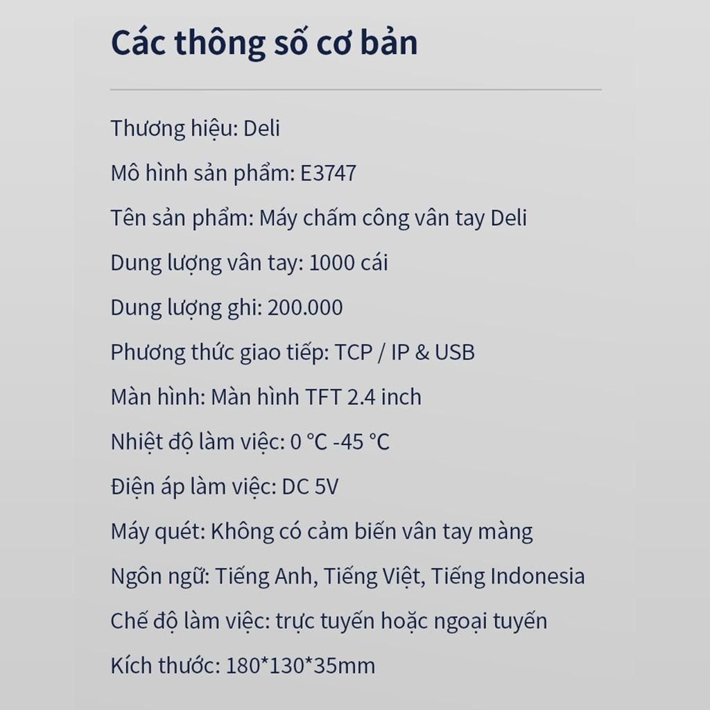 ✨Máy Chấm Công Quét Vân Tay Deli hàng Chính Hãng Deli - Màn Hình 2.4 Inch, Camera Kép, Kết Nối USB - Tích Hợp Nhiều Ngôn Ngữ E3747