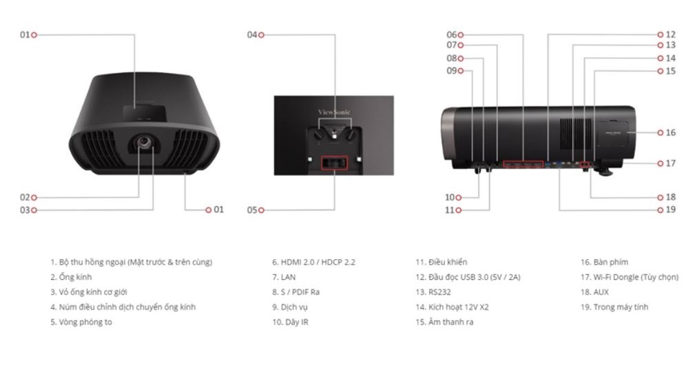 Thông số kỹ thuật Máy chiếu ViewSonic LS500WHE, Hàng chính hãng - Độ phân giải gốc: WXGA (1280x800) - Cường độ sáng: 3000 (ANSI Lumens) - Độ tương phản: 3,000,000:1 - Nguồn sáng: LED,