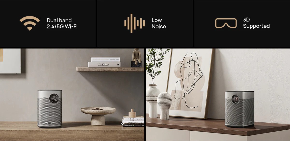 • Intelligent Screen Alignment: tự động điều chỉnh hình ảnh cho phù hợp và tránh vật cản. Giải trí không giới hạn Android TV 10+ với Google Play cung cấp hơn 5000 ứng dụng giải trí từ mọi nơi. Chromecast tích hợp giúp bạn phóng to nội dung yêu thích từ thiết bị Android hoặc Apple lên màn hình lớn. Trợ lý Google tích hợp trong bộ điều khiển từ xa cho phép bạn mở ứng dụng và tìm kiếm video ngay lập tức. HDR 10 tạo ra hình ảnh độ sâu với màu sắc ấn tượng. Chơi game chất lượng Máy chiếu Halo Plus+ được thiết kế để nâng cao trải nghiệm chơi game. Chế độ Game Mode Boost và độ trễ đầu vào thấp 26,5ms giúp bạn tham gia hoàn toàn vào trò chơi đồ họa Bảo vệ mắt và pin dung lượng cao Máy chiếu Halo Plus+ bảo vệ mắt người dùng bằng cách hạn chế ánh sáng xanh. Đèn LED có tuổi thọ lên đến 30,000 giờ và tiêu thụ ít điện năng. Pin dung lượng cao đảm bảo tính di động, bạn có thể xem video trong 3,5 giờ và nghe nhạc trong 5 giờ. Kết nối linh hoạt Hệ thống cổng kết nối đa dạng giúp bạn thưởng thức nội dung từ các thiết bị của bạn, bao gồm HDMI, USB, Chromecast và Bluetooth. Thông số kỹ thuật Máy chiếu Full HD XGIMI Halo Plus+