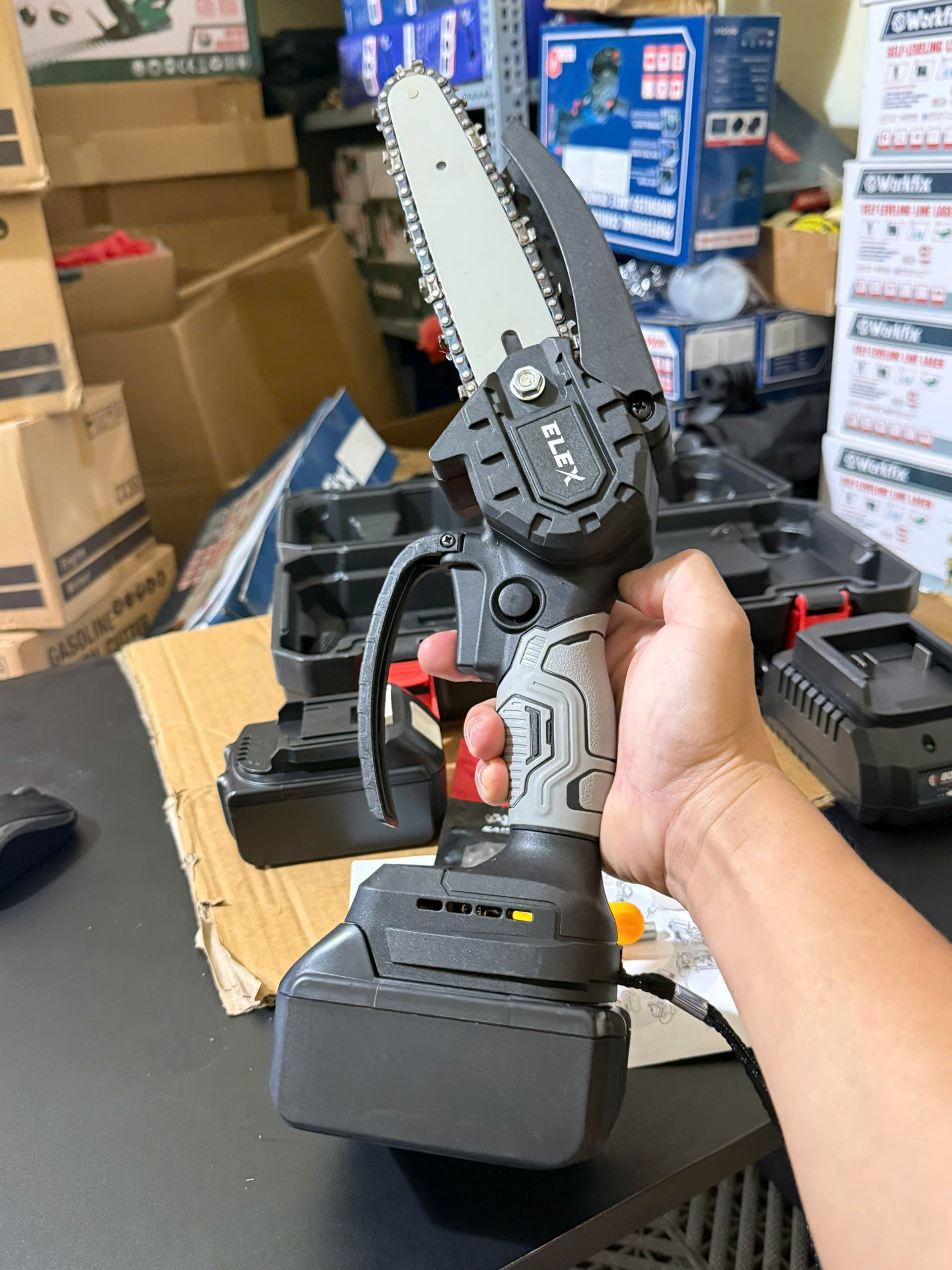 ✨Máy Cưa Xích Dùng PIN Elex Lõi Đồng Mạnh Mẽ Bền Bỉ - Máy Cưa Cầm Tay Mini Cưa Tất Cả Loại Gỗ Siêu Khỏe, Tiện Lợi Dùng Cho Mọi Gia Đình, Bảo Hành 1 Năm