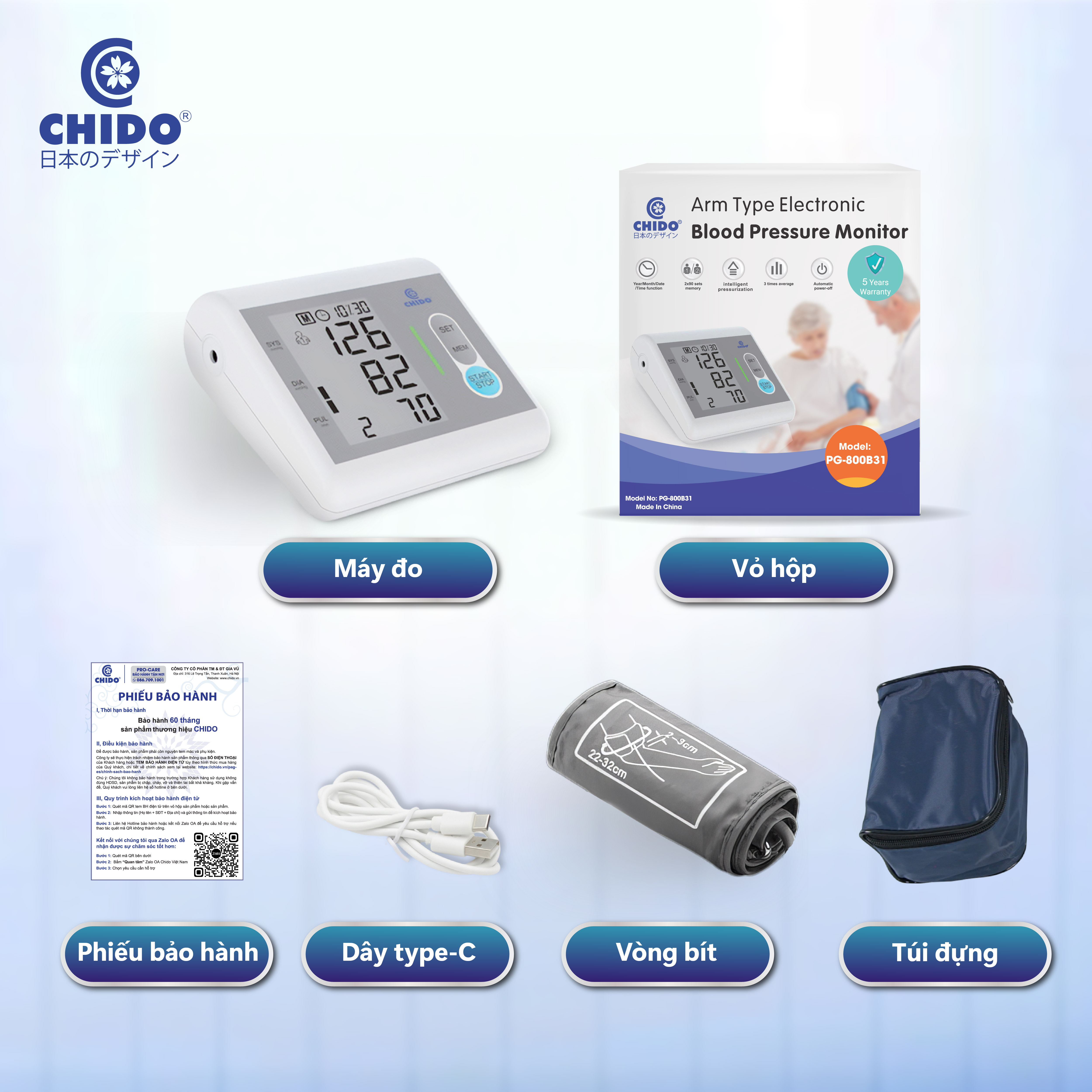 Máy đo huyết áp bắp tay tự động Chido PG-800B31 là dòng sản phẩm mới của Chido. Áp dụng công nghệ IntelliSens tiên tiến đến từ Nhật Bản, giúp đo huyết áp tự động, nhanh chóng, chính xác và thoải mái.
