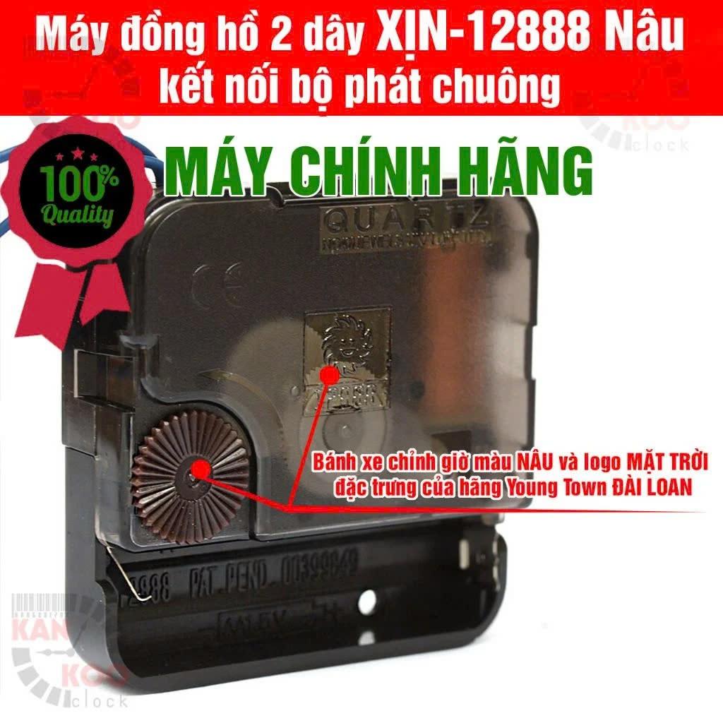 ️ Máy Đồng Hồ Treo Tường 2 Dây Kết Nối Bộ Phát Nhạc Chuông – Model 12888 Bánh Xe Nâu – Hàng chính hãƞg Đài Loan THÔNG SỐ KỸ THUẬT: Model: 12888 – Phiên bản bánh xe chỉnh giờ màu nâu đặc tr...