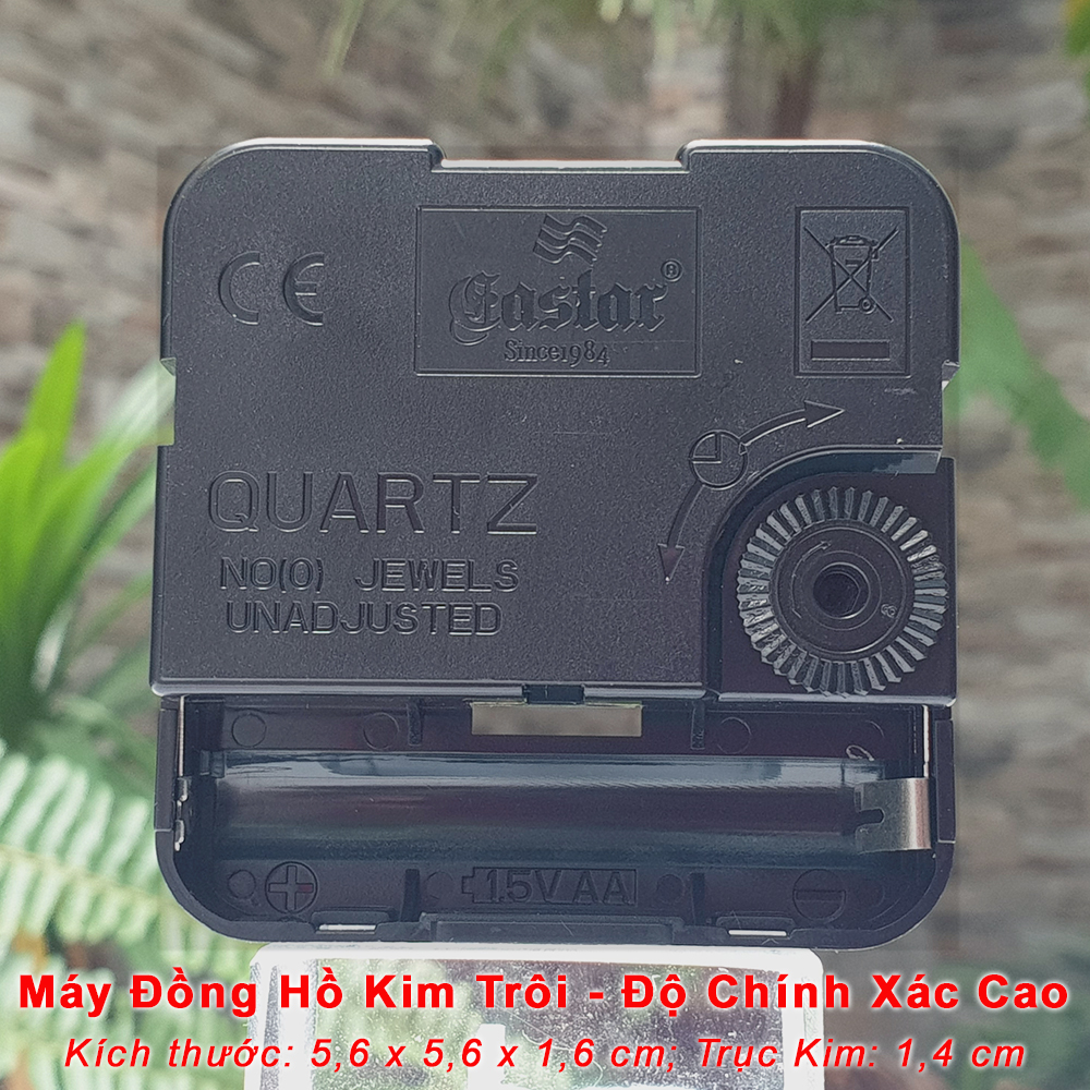 - Loại: Máy Đồng hồ Treo tường Kim dạ quang Công nghệ Thạch anh (Quartz) chạy kim (Analogue), Loại máy đồng hồ kim trôi chạy êm ái, không phát ra tiếng tíc tắc khi hoạt động.