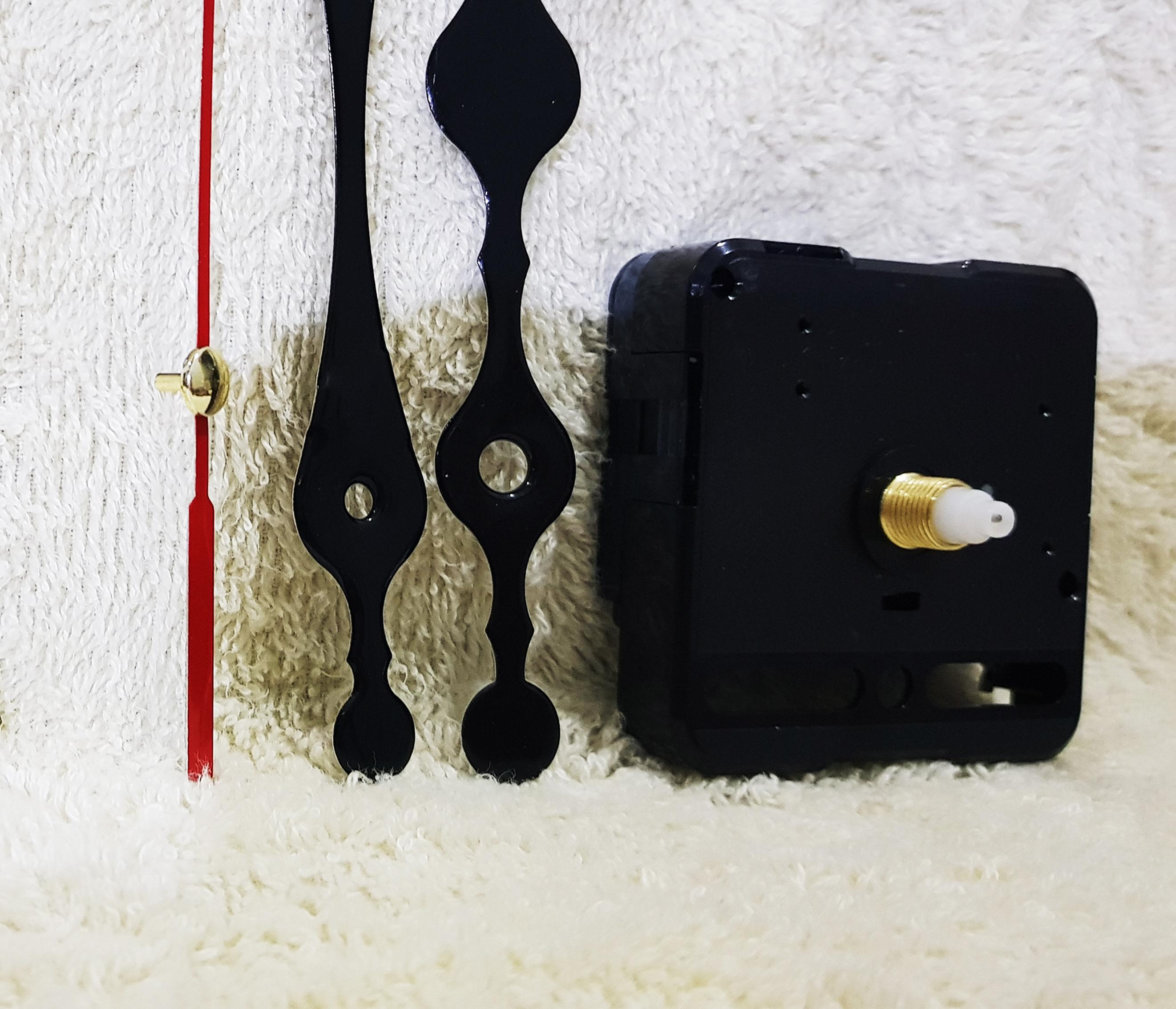 MÔ TẢ SẢN PHẨM Bộ linh kiện gắn đồng hồ treo tường, đồng hồ dán tường cỡ lớn bao gồm: 01 máy đồng hồ: Quartz (chạy 2 kim cỡ lớn) 01 bộ 2 kim (Kích