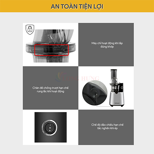 ƯU ĐIỂM SẢN PHẨM: - Động cơ 100% bằng đồng mạnh mẽ và bền bỉ - Công suất cực lớn 250W giúp nghiền nát các nguyên liệu cứng - Tốc độ ép