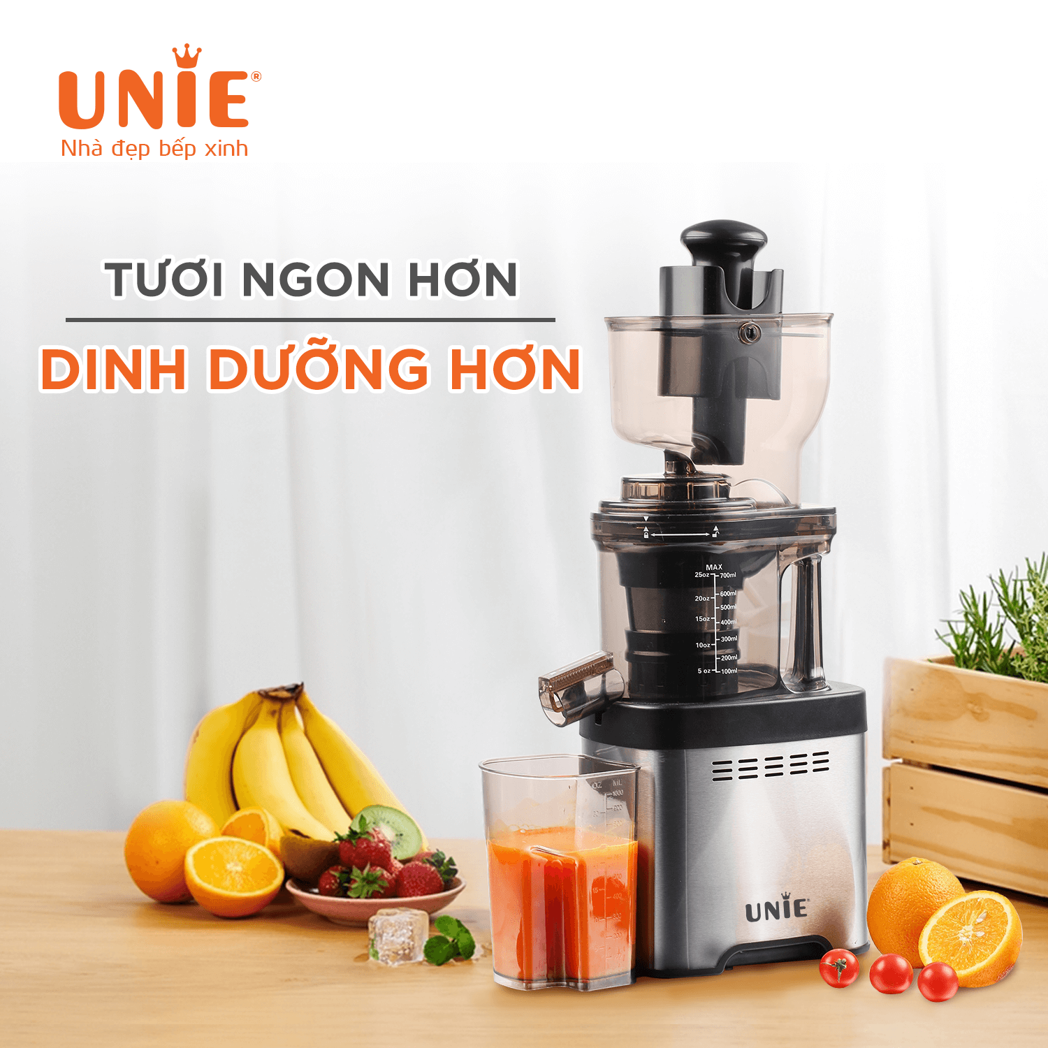 Uống nước ép mỗi ngày để da đẹp nè chị cả nhà ơi Là một thiết bị đa chức năng được thiết kế để ép trái cây và rau quả bằng phương pháp ép chậm.