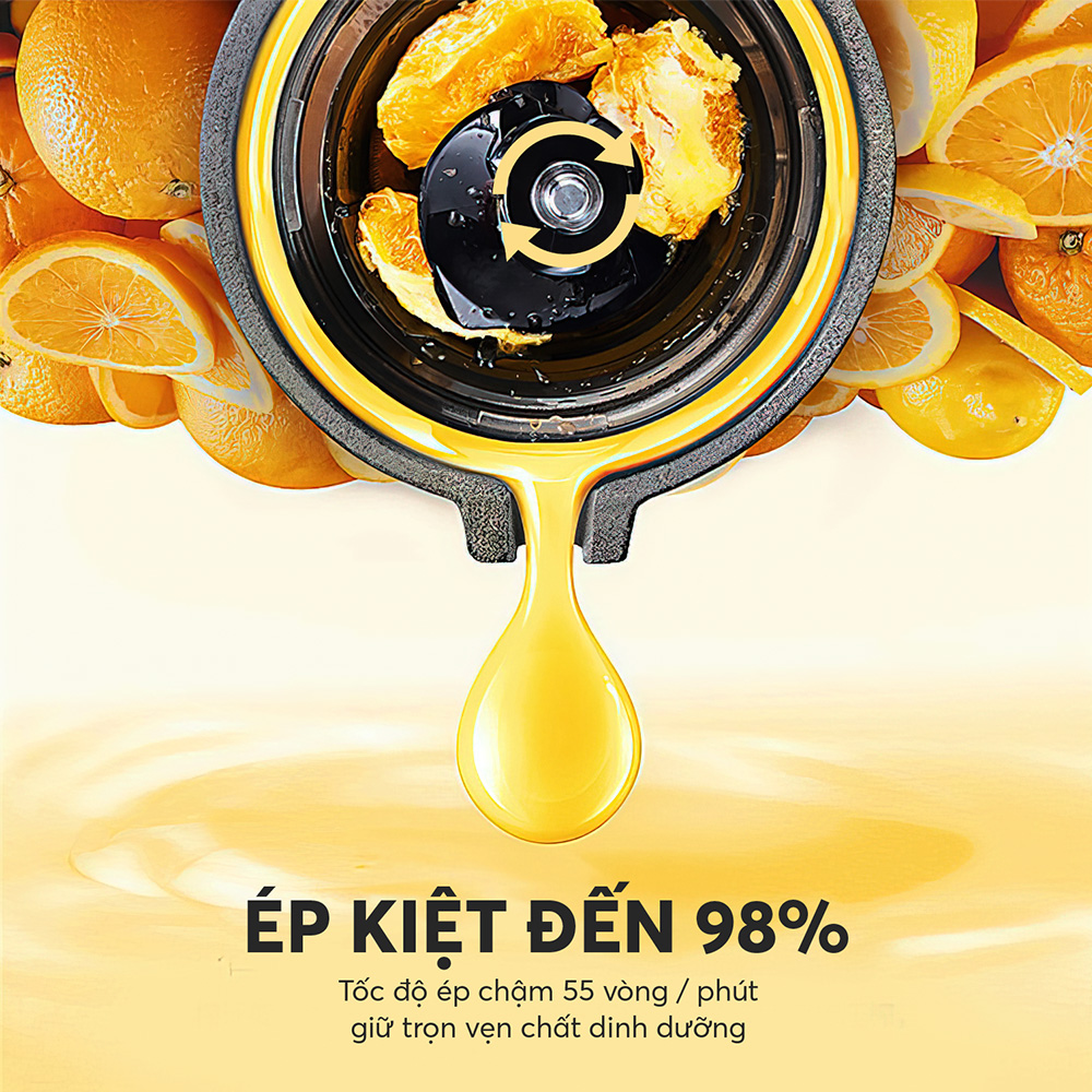 ƯU ĐIỂM SẢN PHẨM: - Động cơ 100% bằng đồng mạnh mẽ và bền bỉ - Công suất cực lớn 250W giúp nghiền nát các nguyên liệu cứng - Tốc độ ép
