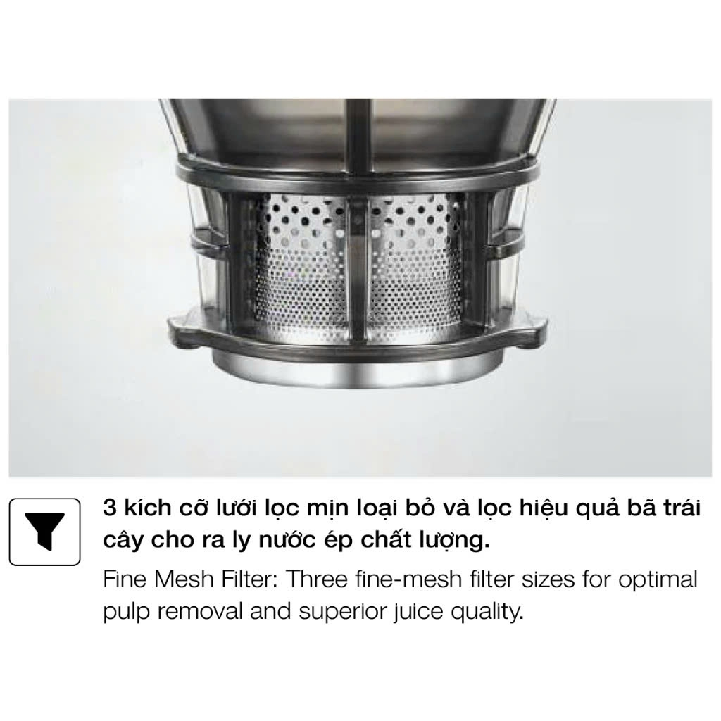 ĐẶC ĐIỂM NỔI BẬT - Công nghệ Đức - Ép kiệt bã đến 97%, mang cho bạn lượng nước ép nhiều hơn so với các loại máy thông thường - Bảo toàn toàn bộ chất