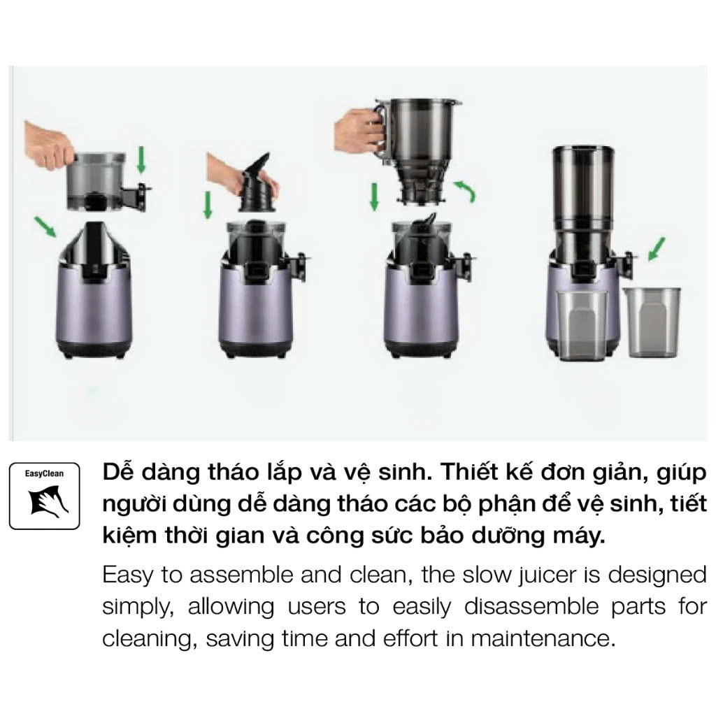 - Loại máy: Máy ép chậm - Công suất: 400 W. - Ép với tốc độ chậm 30-40 vòng/phút, tối đa khả năng chiết xuất, bảo toàn các vitamin và dưỡng chất. - Ống tiếp