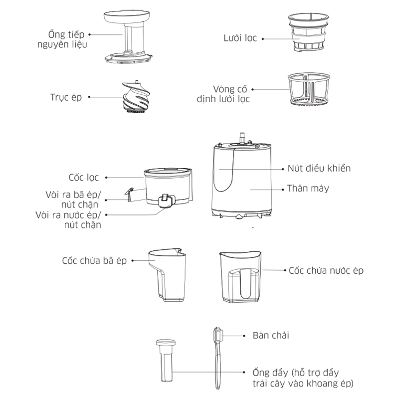Cốc chứa nước ép, bã ép: Máy được trang bị thêm 2 cốc chứa: một cốc chứa bã, một cốc chứa nước ép, tiện lợi cho người dùng trong quá trình sử dụng.