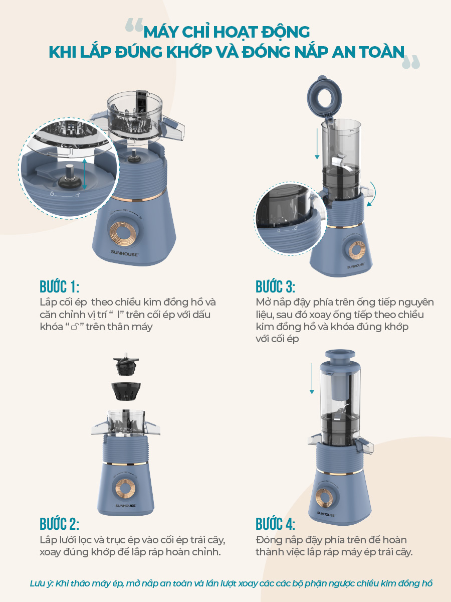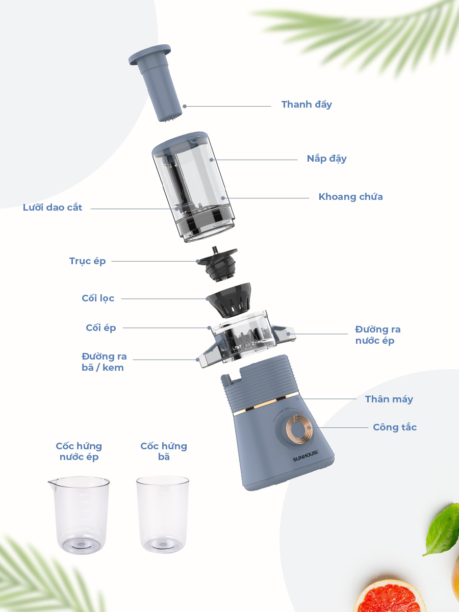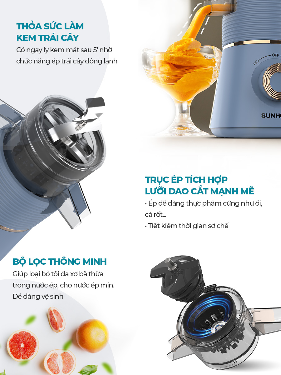 Chức năng: Ép mọi loại rau củ, trái cây, làm kem