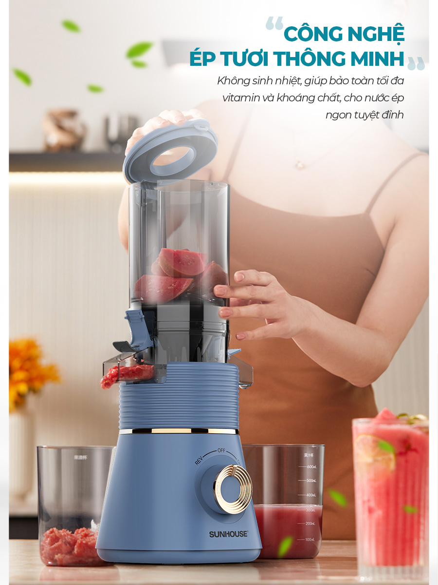 Công nghệ ép tươi thông minh. Không sinh nhiệt, giúp bảo toàn tối đa vitamin và khoáng chất, cho nước ép ngon tuyệt đỉnh.