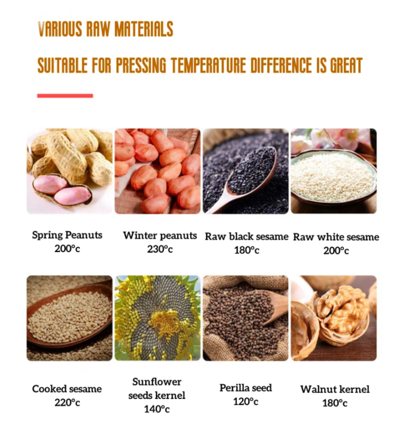 - Lưu ý: Tất cả các thông số trên chỉ là tương đối, còn sẽ tuỳ thuộc vào nguyên liệu thực tế để điều chỉnh thay đổi. Hàm lượng dầu của một số loại hạt: