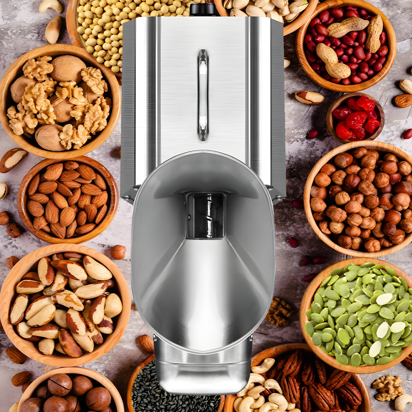 Máy ép dầu thực vật gia đình Septree X9 với tính năng ưu việt, giúp bạn tự tay mình làm ra những chai dầu vàng óng, nguyên chất 100% từ những nguyên liệu hữu cơ: Lạc
