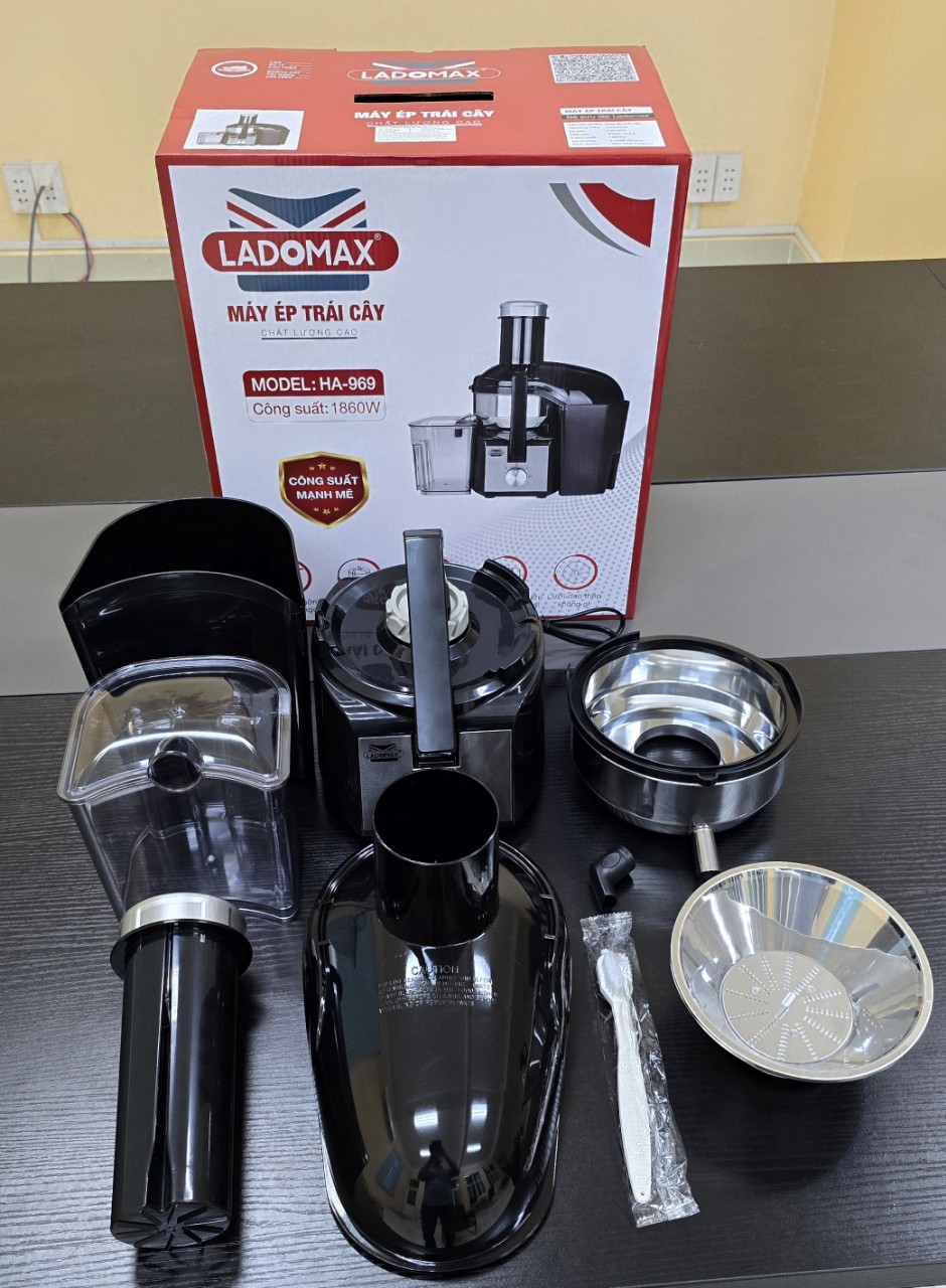 Thông số kỹ thuật - Thương hiệu: Ladomax - Model: Ha-969 - Tên sản phẩm: Máy ép công nghiệp chuyên quán nước ép trái cây - Công suất lớn: 1860W - Dung tích ca đựng