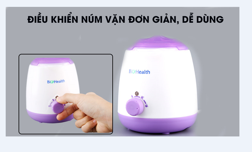 Điều khiển núm vặn với 3 chức năng: hâm sữa, hâm thức ăn, tiệt trùng bình sữa điều chỉnh đơn giản, dễ sử dụng