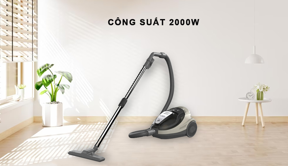 - Công suất 2000W giúp hút bụi nhanh chóng, hiệu quả., tiết kiệm thời gian dọn dẹp nhà cửa.