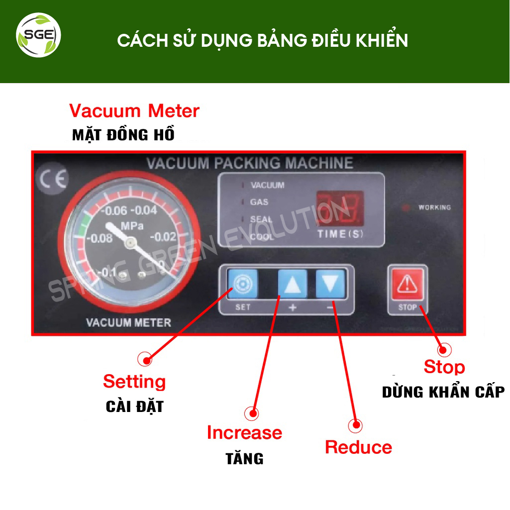 Máy hút chân không đa di năng nhất ở thời điểm hiện tại Buồng hút rộng rãi, hút được đủ mọi thể loại Hút chân không cả đồ khô và đồ có nước. Hai dải hàn hai bên, cực kì năng suất Sử dụng kết hợp được với mọi loại túi. Giảm chi phí đầu tư đến hơn 50% Có thể tùy chỉnh thời gian hàn – hút – nghỉ. Lực hút cực mạnh, đảm bảo không rò rỉ Dải hàn rộng đến 8mm, hàn miệng túi cực kì chắc chắn Nắp máy acrylic trong suốt, chắc chắn và dễ quan sát Lỗ hút chân không cỡ lớn, tốc độ hút cực nhanh MÁY HÚT CHÂN KHÔNG SGE TỐT NHƯ NÀO? Nhà máy sản xuất theo đúng tiêu chuẩn ISO9001, ISO14001 và OHAS18001