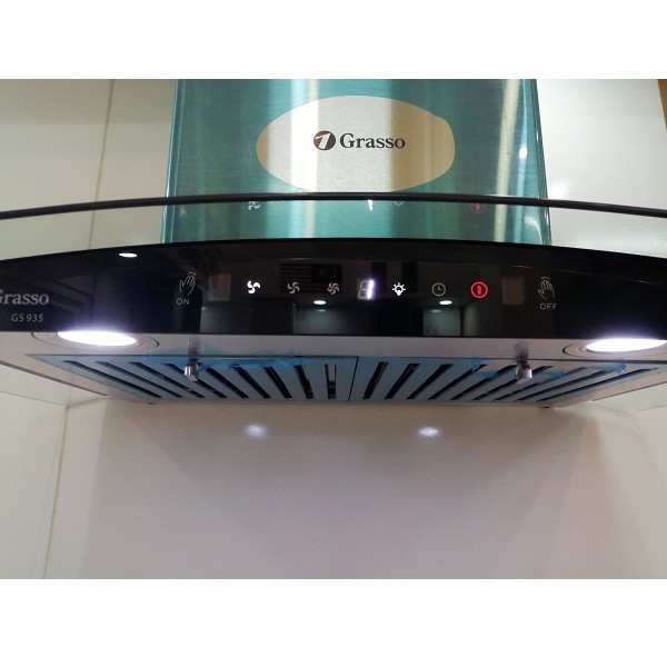 Điểm đặc biệt nhất mà GS 935 sở hữu không hẳn là một bảng điều khiển phím nhấn cảm ứng thông thường mà chế độ điều khiển thông qua cử chỉ bàn tay cực thông minh. Chuyển động bàn tay của bạn từ trái qua phải bạn có thể dễ dàng bật chiếc máy hút mùi của mình, lặp lại hành động một lần nữa để điều chỉnh công suất lên mức độ cao hơn. Máy hút mùi GS 935 có 3 mức công suất để bạn lựa chọn phù hợp với nhu cầu nấu nướng của mình. Để tắt máy hút mùi bạn chuyển động bàn tay từ phải qua trái, máy hút mùi sẽ vẫn hoạt động và tắt sau 3 phút nữa, biểu tượng đồng hồ nhấp nháy. Chuyển động bàn tay từ phải qua trái một lần nữa để tắt máy hút mù ngay, vừa tiện vừa vui đúng không nào.