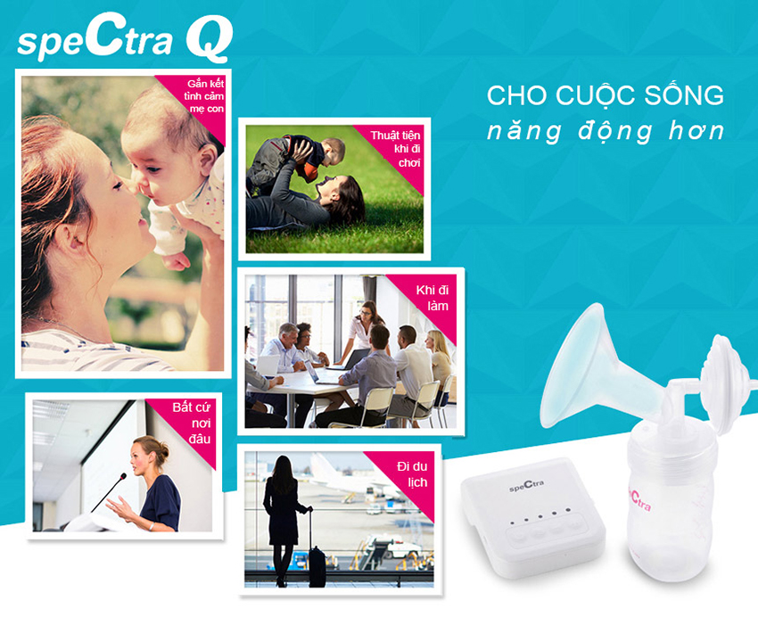 Máy hút sữa Spectra Q giải pháp hút sữa thuận tiện cho mẹ đi làm, đi chơi, đi du lịch. #mayhutsua