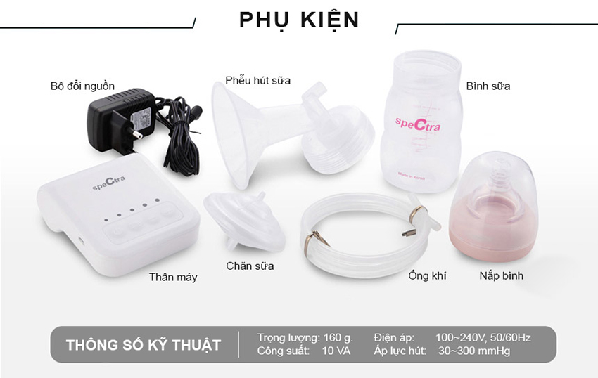 - Máy Hút Sữa Spectra M1 được làm từ nhựa cao cấp không độc hại, không nhiễm chất Bisphenol A (BPA free). Trang bị đèn LED để các mẹ dễ dàng hút sữa trong đêm mà