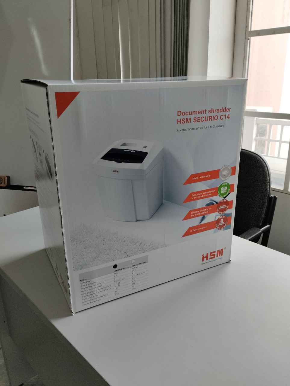 • Chất liệu hủy: Giấy, kim bấm, credit card & CD (khe hủy riêng).