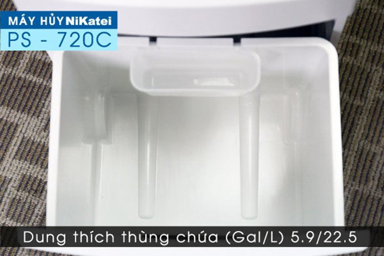 – Máy hủy tài liệu Nikatei PS-720C có thùng chứa lớn 22.5 lít giúp bạn không phải đi đổ rác nhiều lần trong suốt quá trình sử dụng.