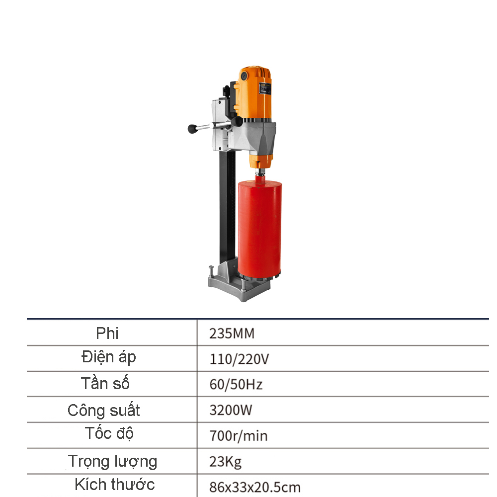 Máy Khoan Rút Lõi DERA Phi 235 - Khoan Rút Lõi Bê Tông Cầm Tay Chuyên Dùng Cho Các Vật Liệu Cứng Như Gạch ,Đá , Bê Tông Ứng Dụng Trong Ngành Xây Dựng – Hàng Chính Hãng