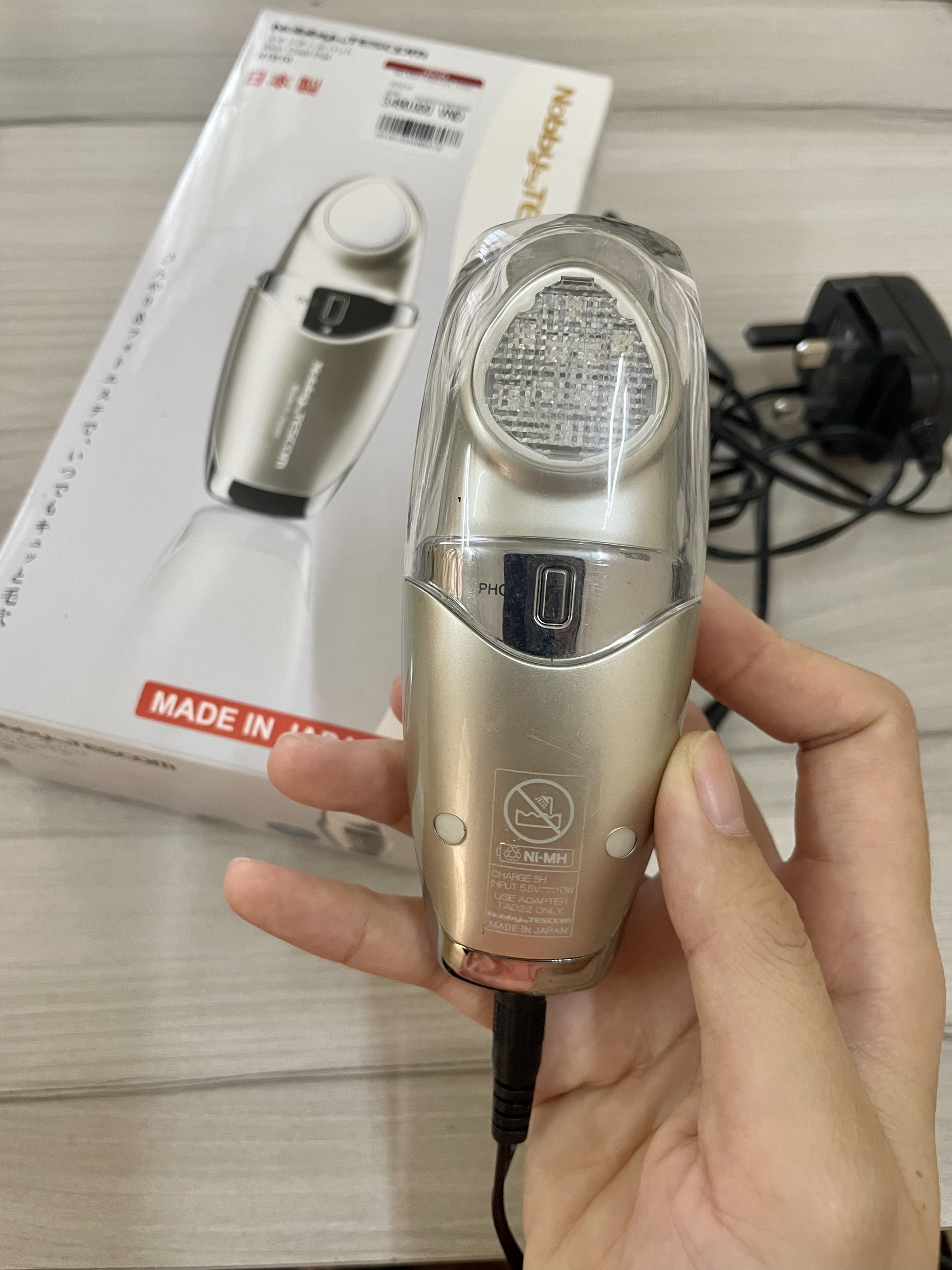 - Thiết kế nhỏ gọn, tiện lợi, thao tác thực hiện nhẹ nhàng, không gây đau đớn, có thể làm tại nhà, giúp tiết kiệm được thời gian, tiền bạc mà vẫn tận hưởng được cộng nghệ chăm sóc da như ở Spa. TẬN HƯỞNG CÔNG NGHỆ CHĂM SÓC DA BẰNG QUANG VÀ LẠNH NGAY TẠI NHÀ Máy làm căng mịn da mặt ứng dụng ánh sáng đèn hồng ngoại kết hợp với vi dòng giúp trẻ hóa làn da bị lão hóa, phục hồi các vết hư tổn trên làn da. Tăng cường độ đàn hồi và khả năng thẩm thấu dưỡng chất của da, có thể kết hợp với serum dưỡng cho làn da đẹp. NTE10 có thiết kế nhỏ gọn vừa vặn tay cầm, pin trong máy là pin sạc có điện áp sạc 100V–240V, thiết kế nhỏ gọn vừa tay dễ dàng bỏ túi xách đi khắp mọi nơi. Sản phẩm do Tescom Denki Co.,Ltd sản xuất tại Nhật Bản, nhập khẩu chính hãng về Việt Nam ▼THÔNG SỐ KỸ THUẬT