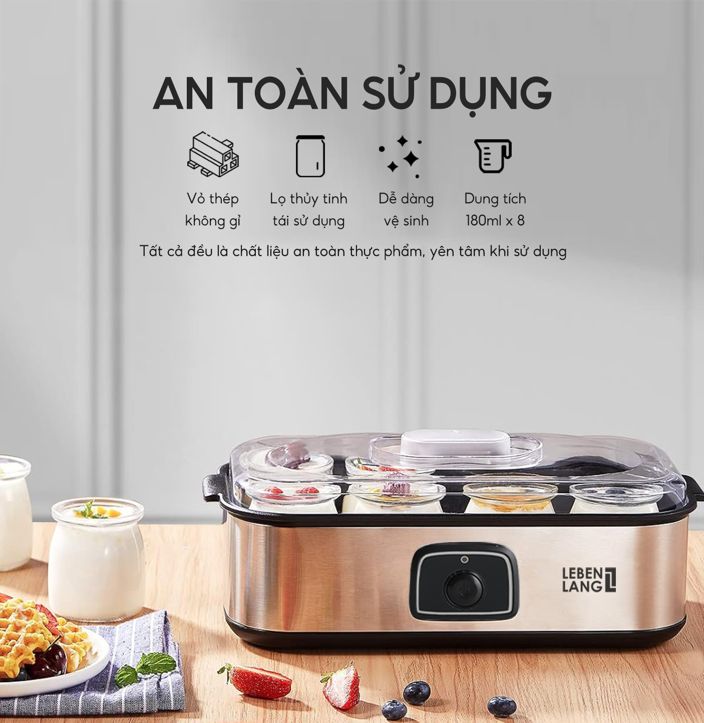 Mua tại TiktokMáy làm sữa chua Lebenlang LBL9139, máy ủ sữa chua công suất 20W, dung tích 180ml, gồm 8 lọ thủy tinh, bảo hành 2 năm - hàng chính hãng 6 LÝ DO NÊN CHỌN MÁY LÀM SỮA CHUA CỦA LEBENLANG