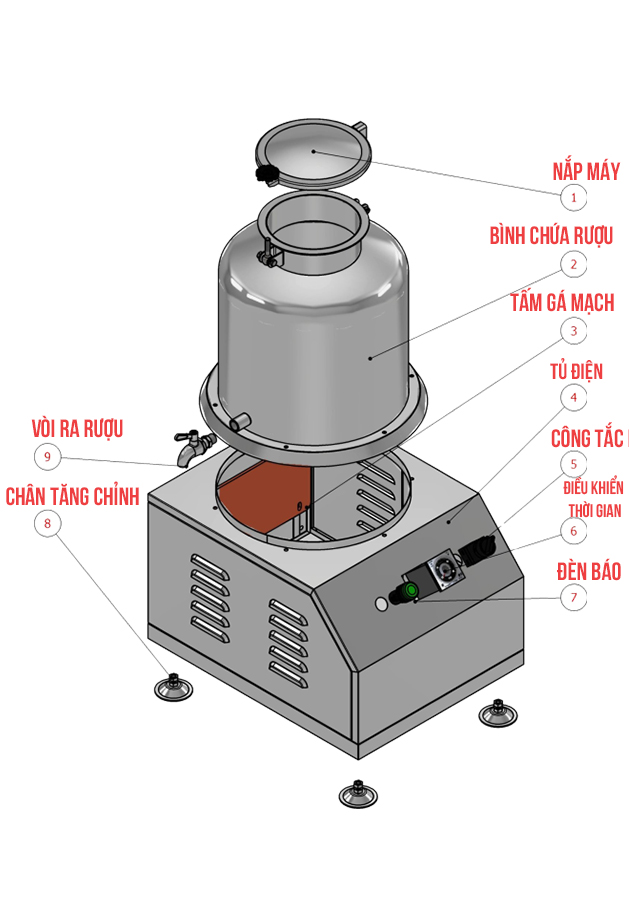 Thông số kỹ thuật máy lão hóa rượu gipwin 35L - Model : GW - 35L - Kích thước : 570x470x780mm - Dung tích : 35 lít - Điện áp : 220V/50Hz - Công suất : 610W(Max) Cách sử dụng Đối
