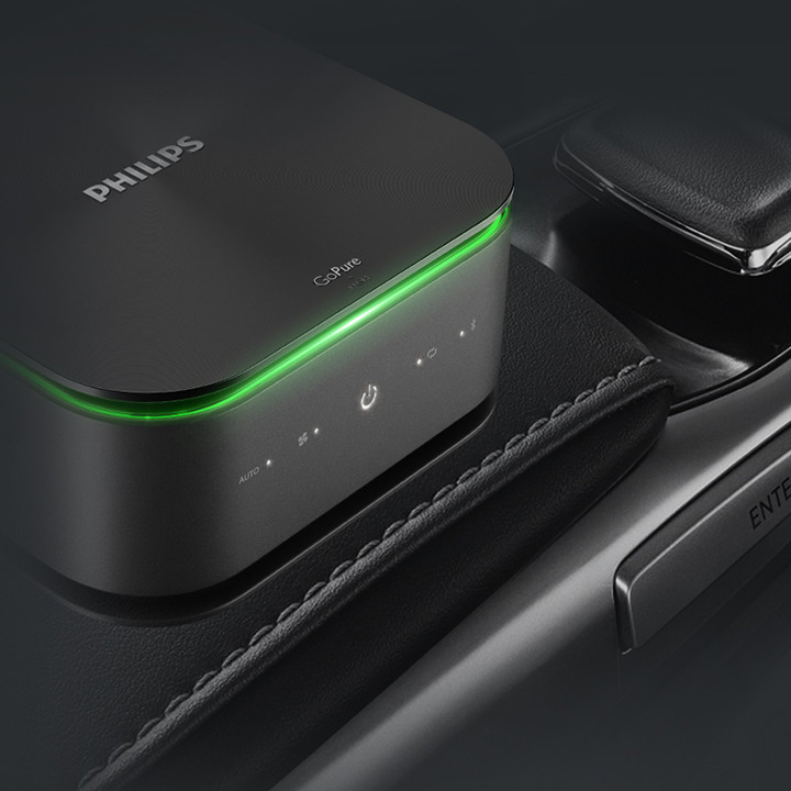 Máy khử mùi, lọc không khí dạng cốc trên xe ô tô cao cấp Philips GP5601 công suất 5,5W tích hợp 5 công nghệ tiên tiến bảo vệ không khí trong xe Philips là tên