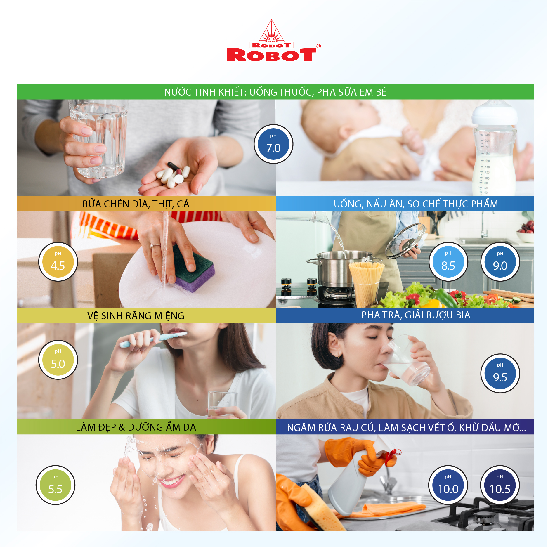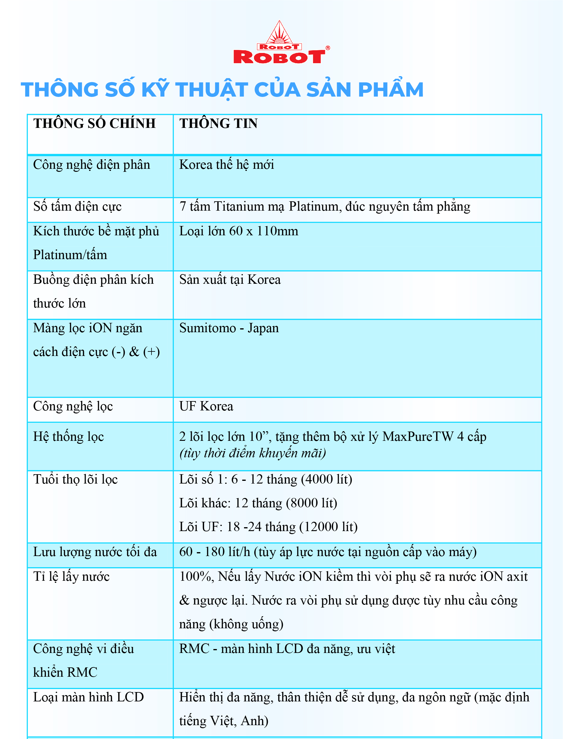 Máy lọc nước điện giải iON kiềm ROBOT ionSmart 710 là sản phẩm được sản xuất với công nghệ tiên tiến, cao cấp trang bị đến 7 tấm điện cực lớn nhất, có khả năng tạo ra đến 10 loại nước đa chức năng: