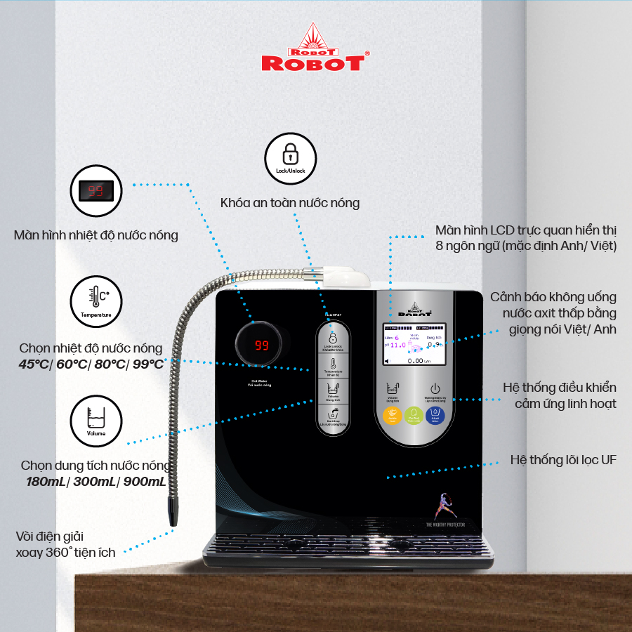 Máy lọc nước điện giải iON kiềm Nóng ROBOT ionSmart 710