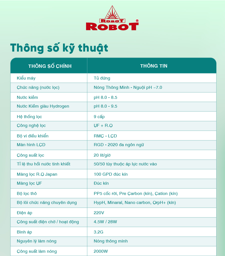 Duy trì mục tiêu lan tỏa nguồn nước tốt đến với cộng đồng, các sản phẩm từ nhà sản xuất ROBOT luôn ổn định với mức giá tối ưu và cùng nhiều chương trình ưu đãi, khuyến mãi trong năm mang đến lợi ích tối đa cho người dùng.