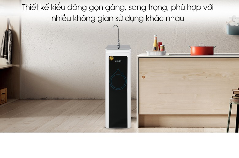 Máy lọc nước Karofi thiết kế dạng tủ đứng sang trọng, vỏ sáng bóng, đẹp mắt góp phần làm tăng tính thẩm mỹ cho không gian sống