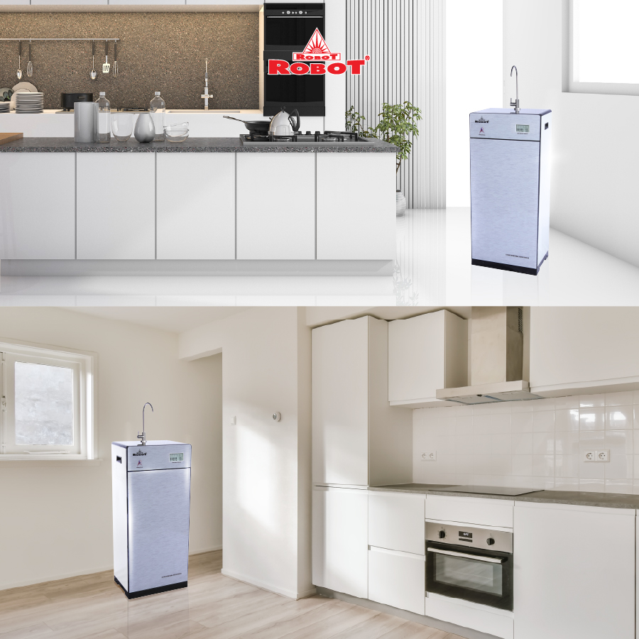 • Kích thước máy nhỏ gọn tối ưu, không chiếm diện tích, phù hợp mọi không gian lắp đặt.   Máy lọc nước ROBOT Thế hệ mới có kiểu dáng hiện đại, tinh tế, phù hợp với nhiều không gian và phong cách nội thất khác nhau