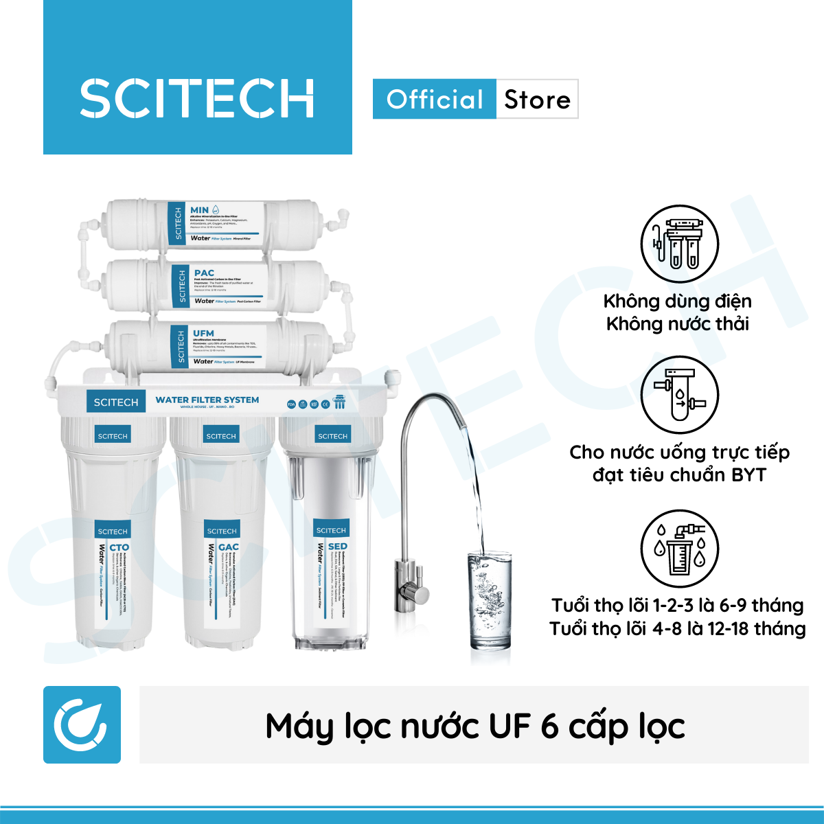✨Máy lọc nước UF 6 cấp lọc by Scitech (Không dùng điện, không nước thải) - Hàng chính hãng