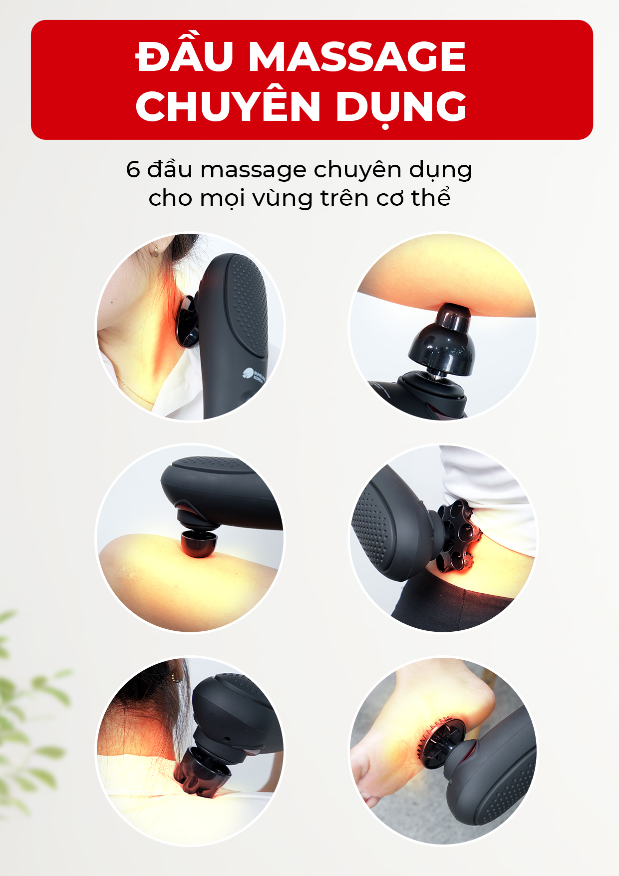 Dễ dàng tuỳ chỉnh: 6 mức cường độ và 6 đầu chức năng có thể hoán đổi cho nhau giúp bạn thư giãn nhất trong quá trình massage của mình. Công nghệ bộ gõ tác