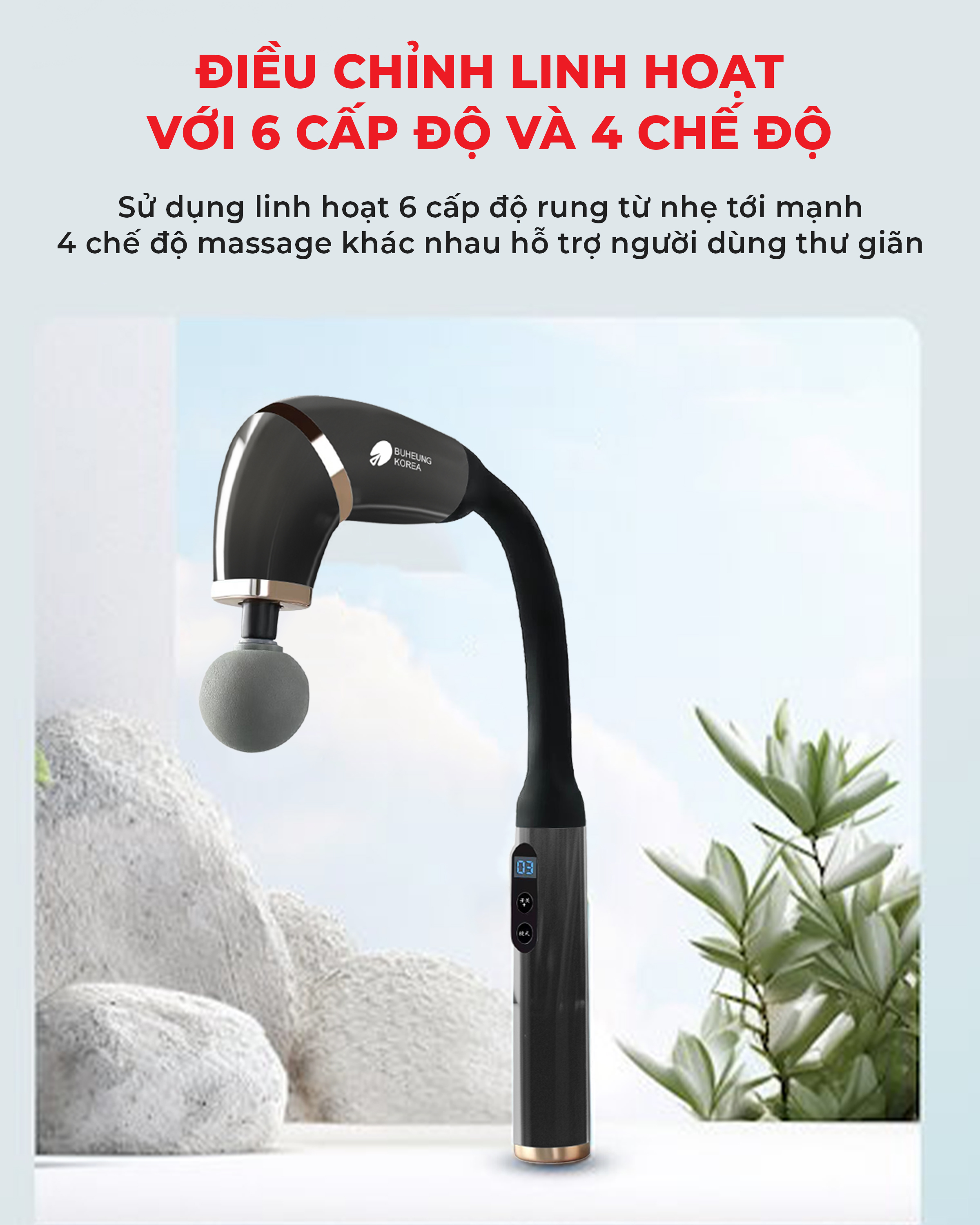 ✨Máy massage cầm tay Buheung MK-229, thiết kế công thái học, 4 đầu massage, BH chính hãng 12 tháng
