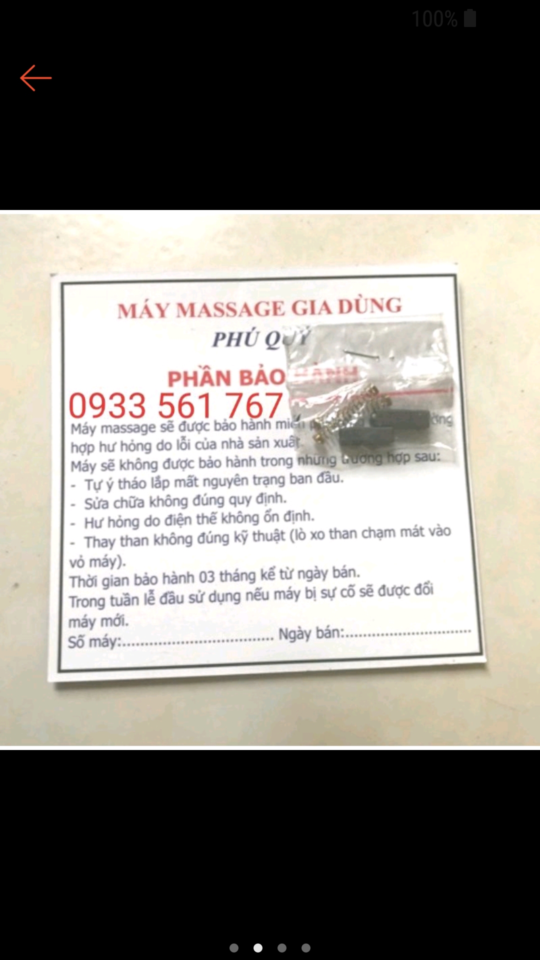 Máy massage Phú Quý sử dụng motor nhập khẩu Nhật chất lượng cao Hàng bảo hành chính hãng 3 tháng cho các bạn yên tâm sử dụng Dây dài khoảng 3 mét tiện lợi khi sử dụng Dùng điện gia đình 220V, có công tắc và đèn báo Chỉnh độ rung mạnh nhẹ bằng núm vặn theo ý thích Giúp thư giản cơ bắp và giảm mệt mỏi sau những giờ làm việc mệt mỏi Máy massage có cán cầm này đã được kiểm định chất lượng và an toàn tại Trung Tâm 3 TC - ĐL - CL TPHCM. Và được đăng ký bản quyền thương hiệu tại cục sở hữu trí tuệ Ngoài ra còn có máy massage đeo tay tiệm tóc chuyên dùng, các bạn có thể mua dùng tại nhà Hướng dẫn sử dụng: Cắm điện 220V và bật công tắc từ OFF sang ON sẽ thấy đèn báo sáng lên Từ từ xoay núm vặn theo kim đồng hồ để chỉnh cho độ rung mạnh dần theo ý thích Massage sử dụng mặt có lớp đệm bằng mút cho hiệu quả rung tốt nhất LƯU Ý: Không đè ghì máy khi massage mà chỉ rà đi trên bề mặt để máy được bền hơn Không để rơi rớt, tránh làm nước hay mồ hôi rơi vào máy