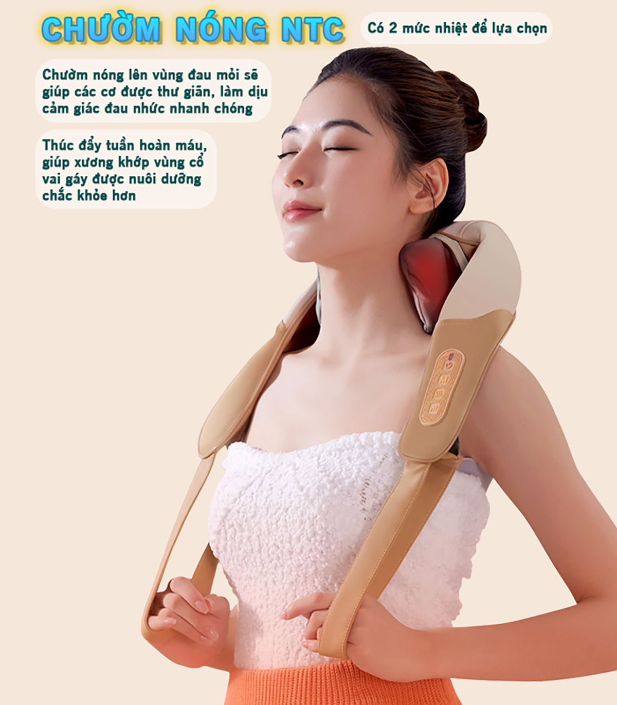 Máy massage cổ vai gáy pin sạc Nikio NK-139 - xoa bóp kết hợp chườm nóng
