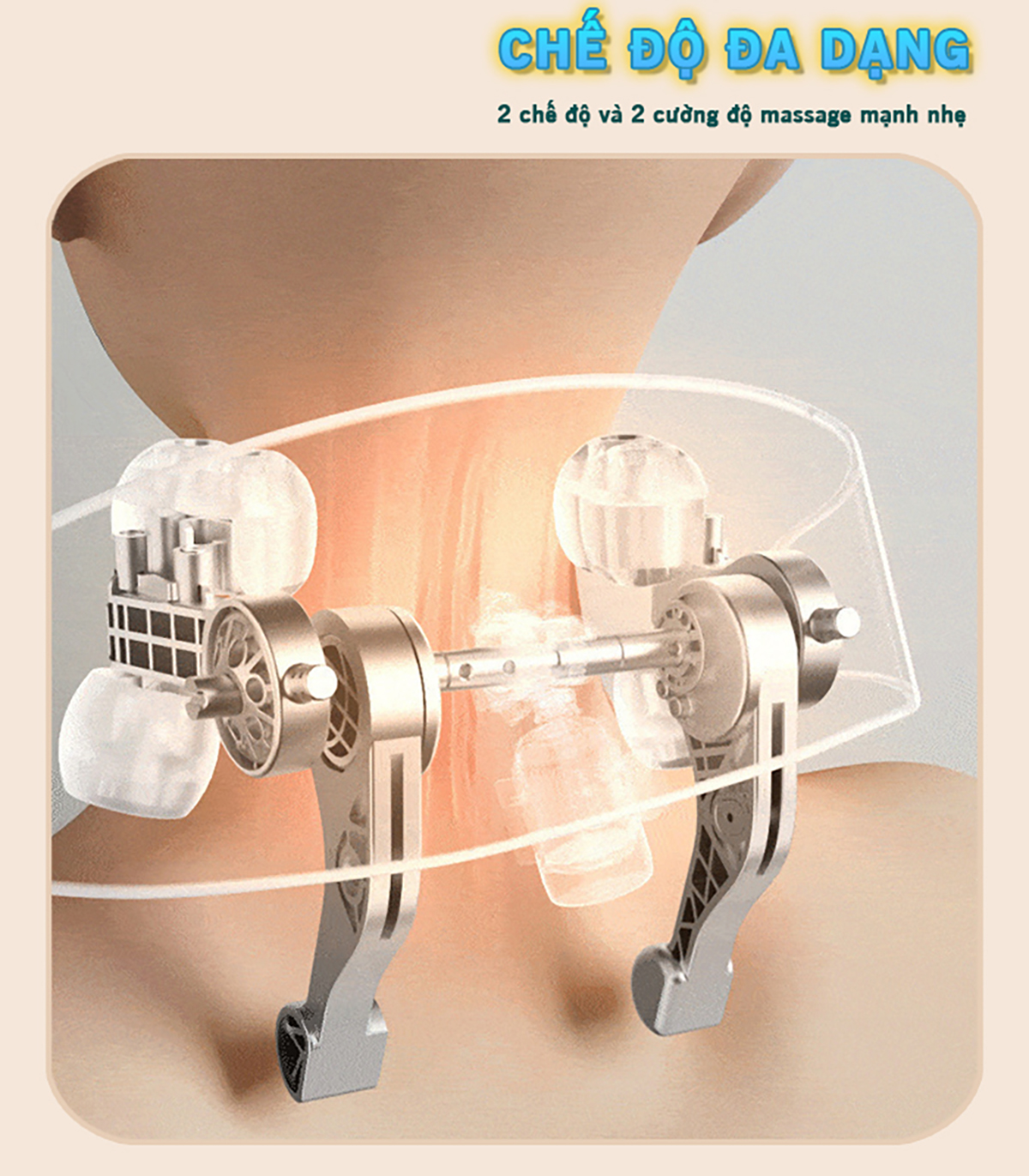 Bốn con lăn được chia làm 2 cặp, xoay 360 độ giúp xoa bóp sâu hơn vùng cổ và vai. Máy có thêm 2 càng, giống như 2 ngón tay vừa miết vừa xoa vào vùng cổ vai gáy, giúp giảm đau nhanh chóng.