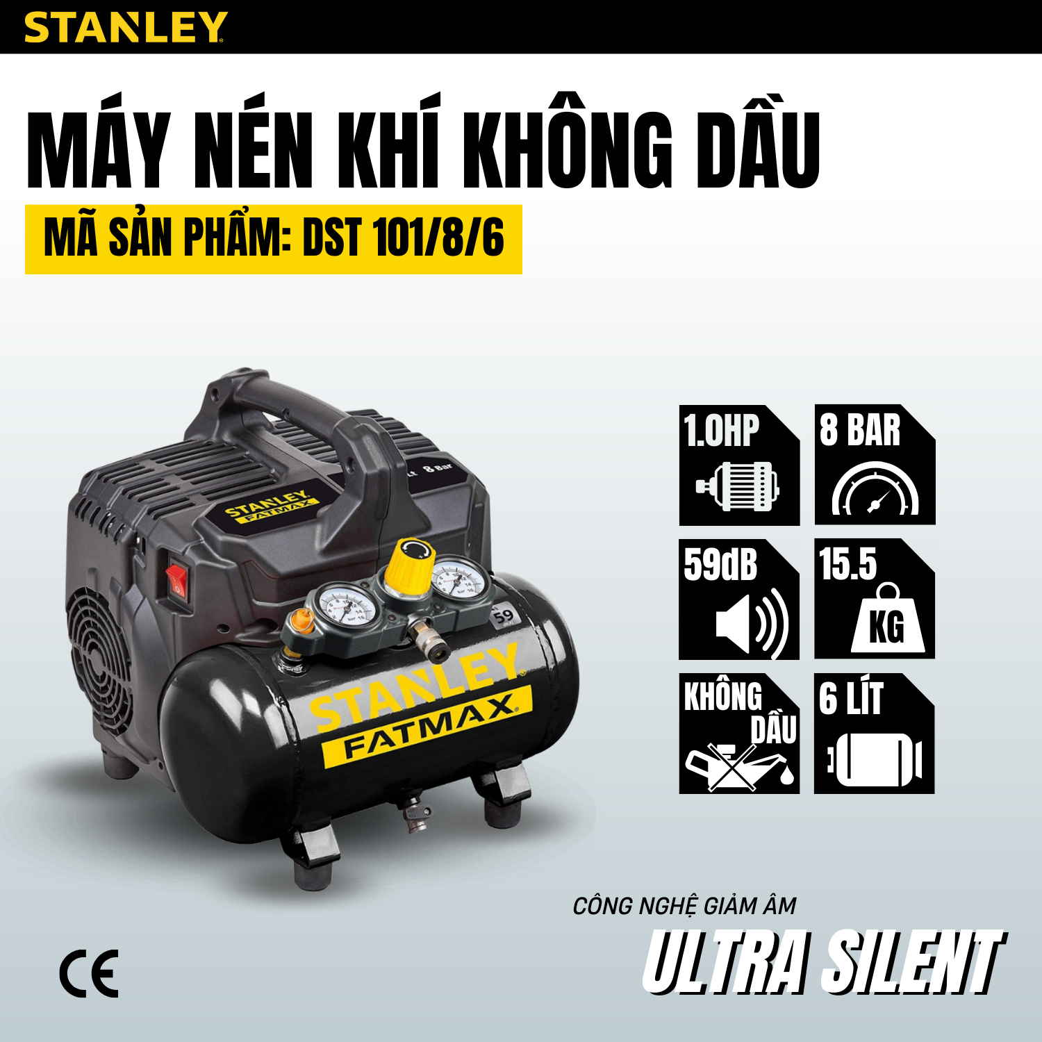 ✨Máy nén khí không dầu 6L Stanley Fatmax DST101/8/6