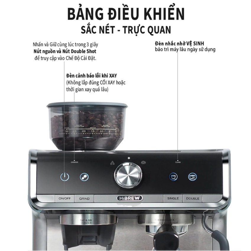 Máy pha cà phê bán tự động Espresso, Cappuccino, Latte thương hiệu Mỹ cao cấp HiBREW H10B - Hàng Nhập Khẩu Tiếp nối thành công phiên bản Máy pha cà phê espresso bán tự động