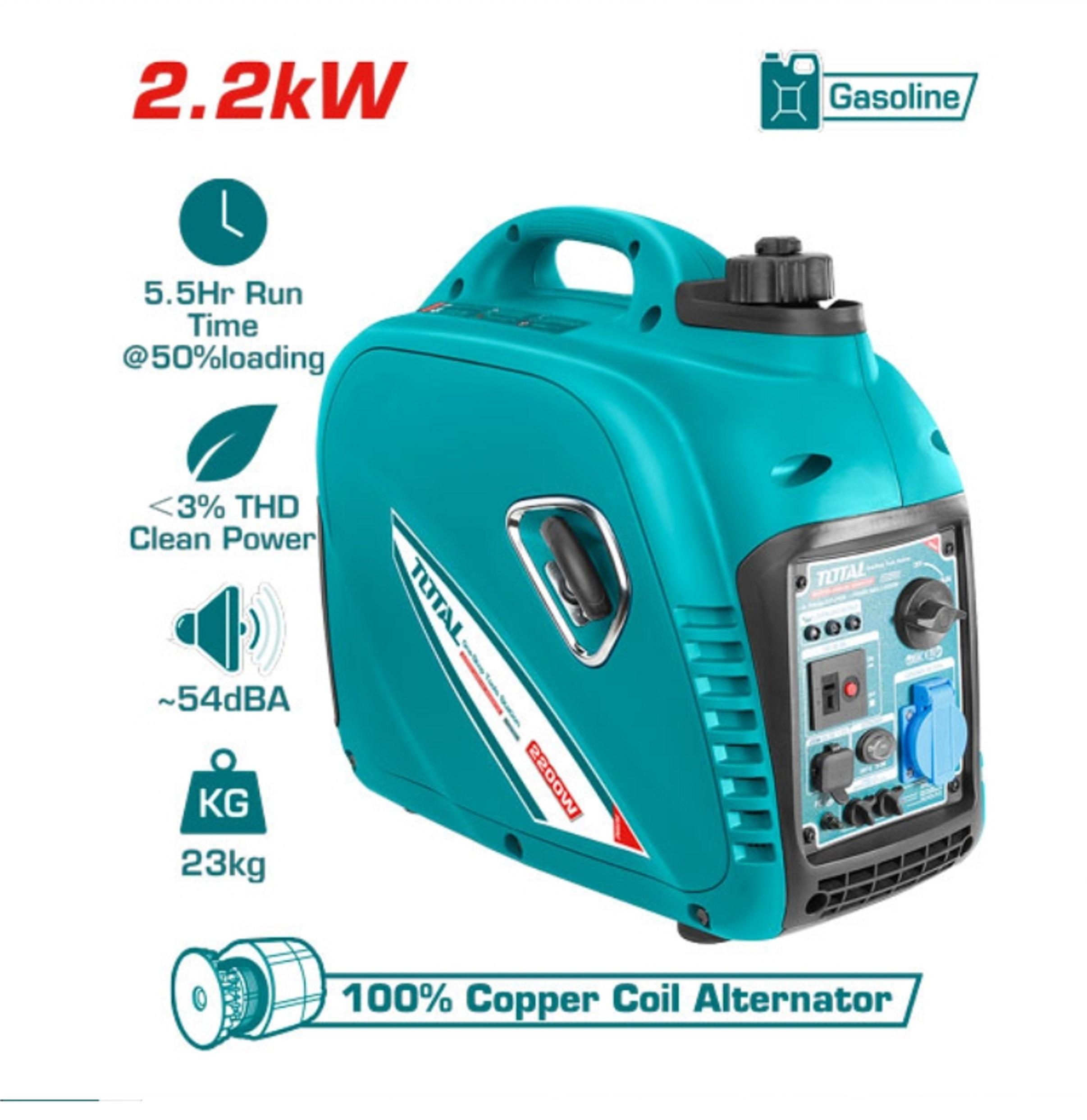 Mua tại TiktokMáy phát điện biến tần dùng xăng 2Kw Total TP530001 là một sản phẩm đa năng và tiên tiến với công nghệ biến tần. Với thiết kế nhỏ gọn, máy có khả năng cung cấp điện cho các thiết bị trong gia đình, các hoạt động cắm trại hay các công việc xây dựng.